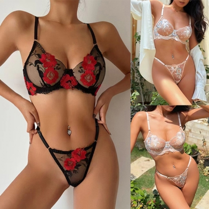 Sexy Floral Embroidery Two-piece Lingerie Set
