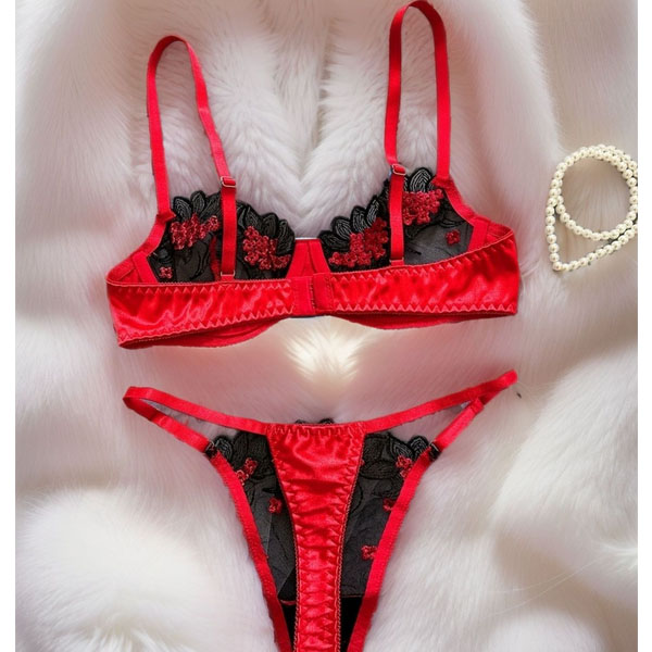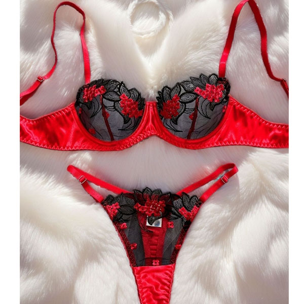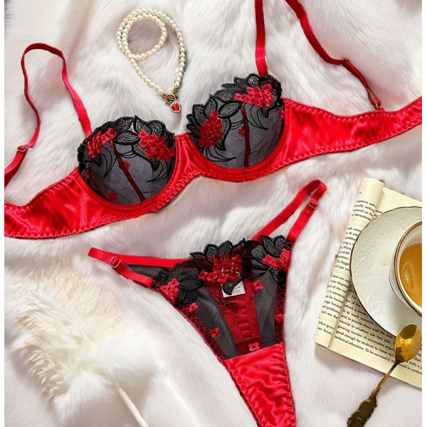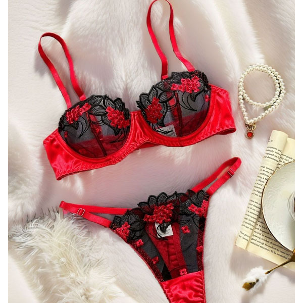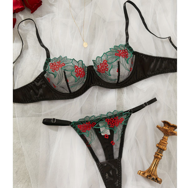 Sexy Floral Embroidery Two-piece Lingerie Set