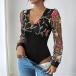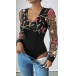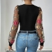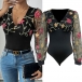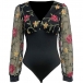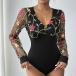 Sexy Floral Embroidery V-neck Gauze Spliced Long Sleeve Bodysuit