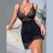 Sexy Floral Embroidery V-neck Lace Spliced Nightwear Dress