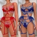 Sexy Floral Pattern Ruffle Lace-up Three-piece Lingerie Set
