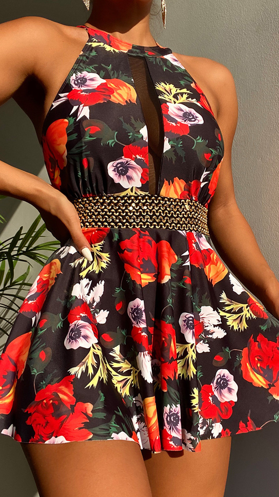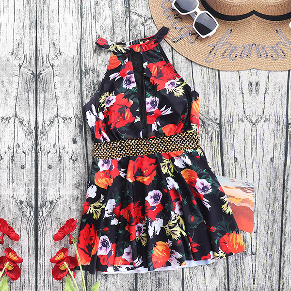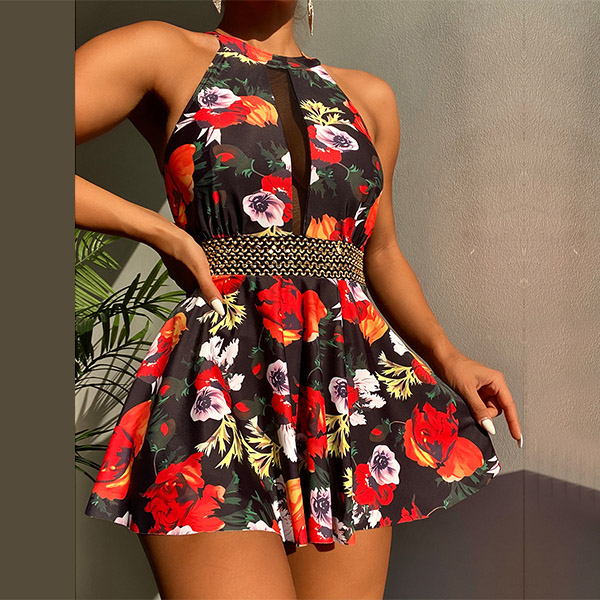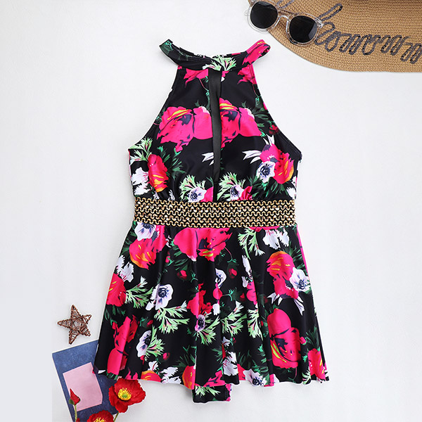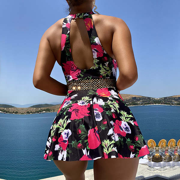 Sexy Floral Printed Backless One-piece Swimsuit