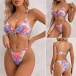 Floral printed bikini set, this summer's fashion weapon. Lined, soft-cup bikini top with a drawstring at front. No fasteners. Bikini bottoms with regular waistline.