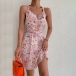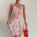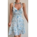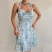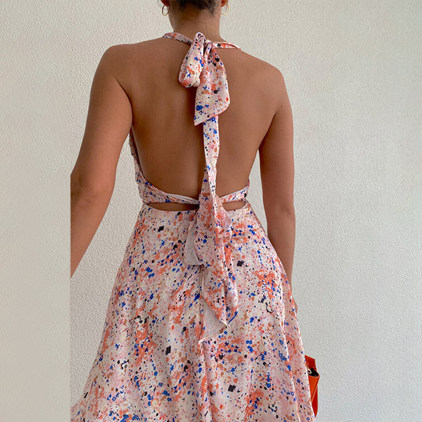 Sexy Floral Printed Halter Neck Backless Self-tie Summer Dress