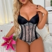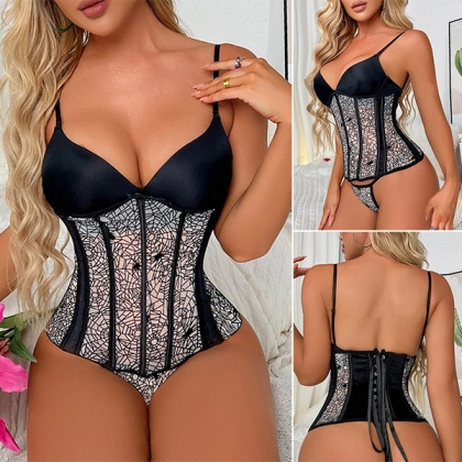 Sexy Floral Printed Lace-up Two-piece Corset Lingerie Set