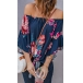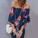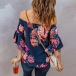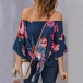 Sexy Floral Printed Off-the-shoulder Elbow Sleeve Self-tie Shirt