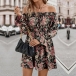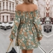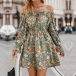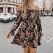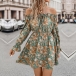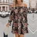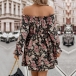 Sexy Floral Printed Off-the-shoulder Long Sleeve Party Dress