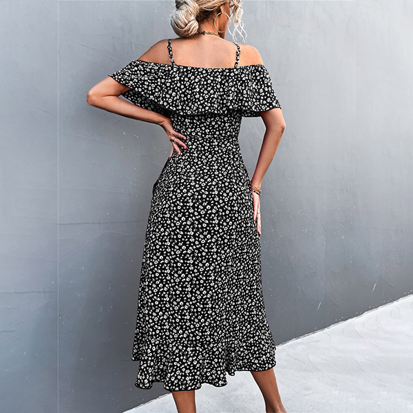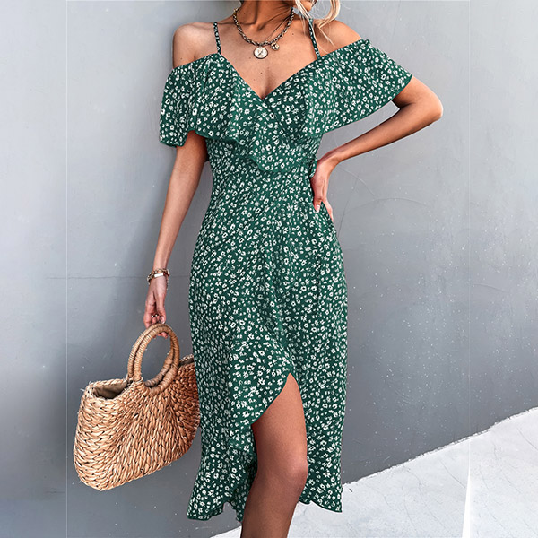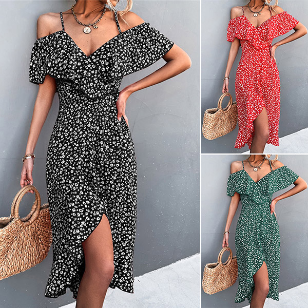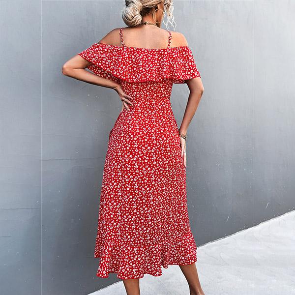 Sexy Floral Printed Ruffle Front Slit Slip Dress