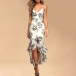 Sexy Floral Printed Ruffle High-low Hemline Slip Dress
