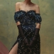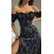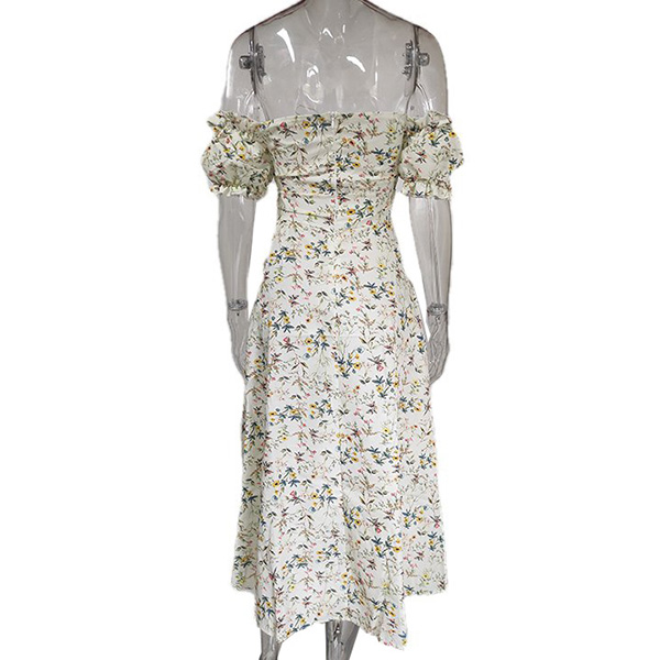 Sexy Floral Printed Ruffled Off-the-shoulder Short Sleeve Slit Dress