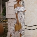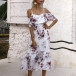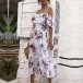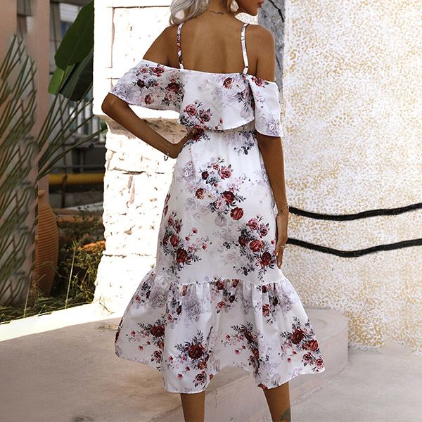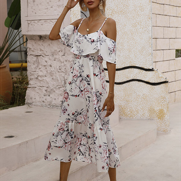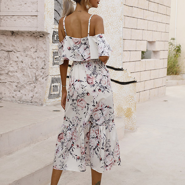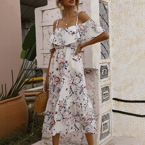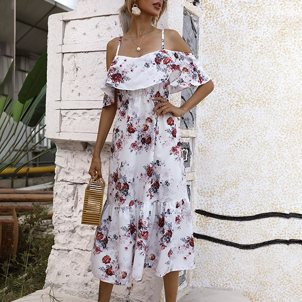 Sexy Floral Printed Ruffled Open-shoulder Slip Tiered Dress