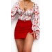 Sexy Floral Printed Self-tie Scoop Neck Lantern Sleeve Shirt