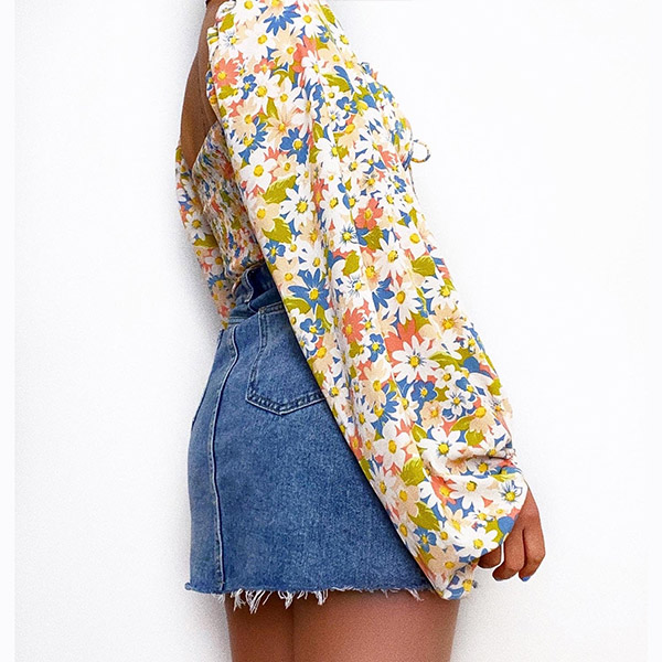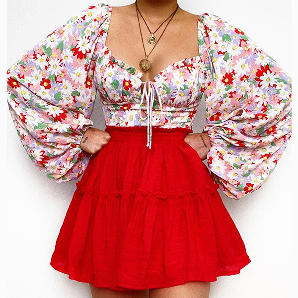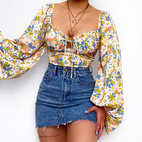 This season calls for a floral printed shirt! How about this one? The floral print is simply stunning and is sure to turn heads wherever you go. I like the lantern sleeve design, and you?