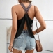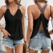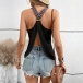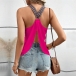 This chic shirt features V-neckline, floral pritned shoulder strap detailing, and dramatic backless design with O-ring and back slit. You could pair it with tailored shorts and sandals for a more casual daytime look.