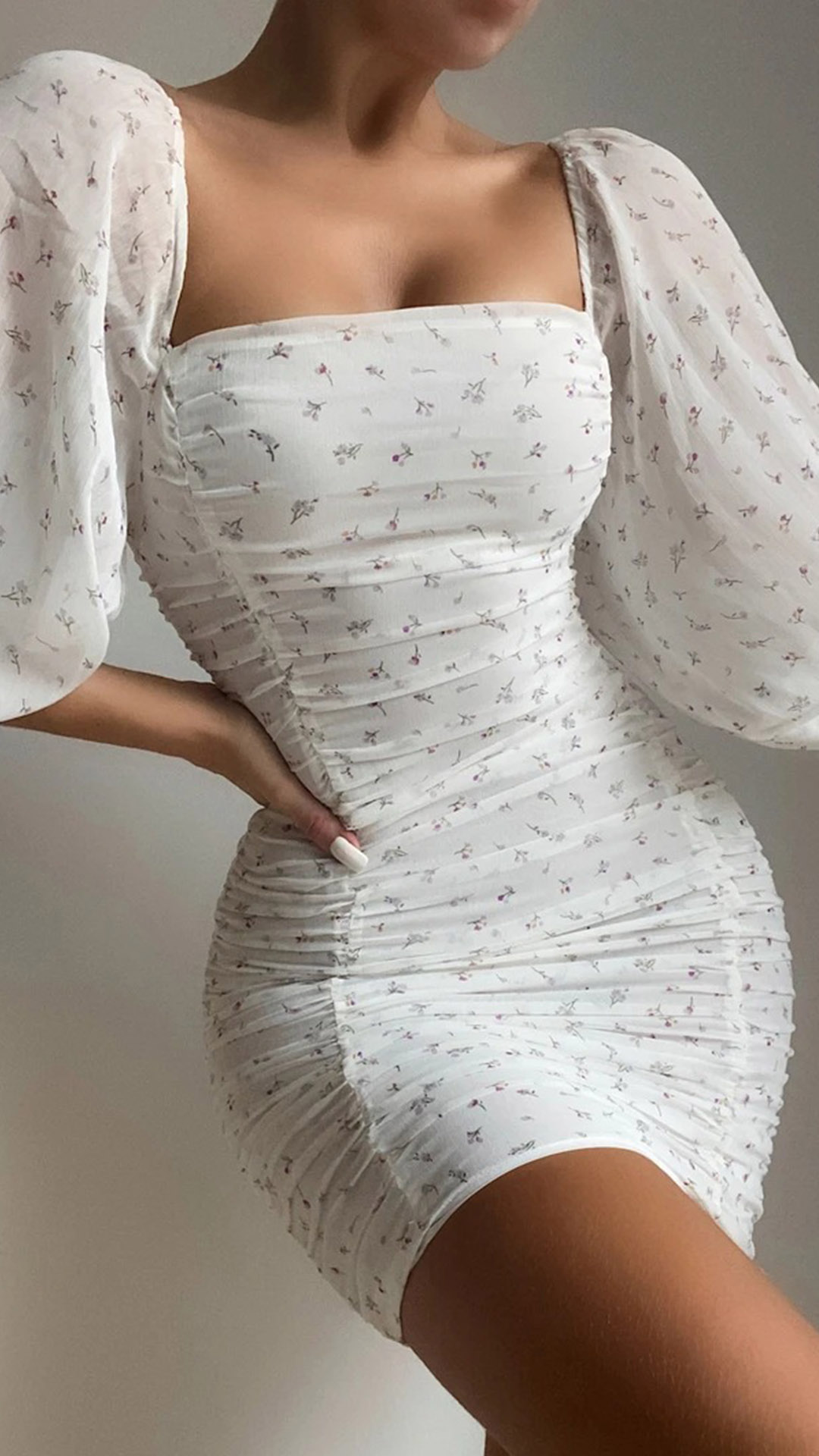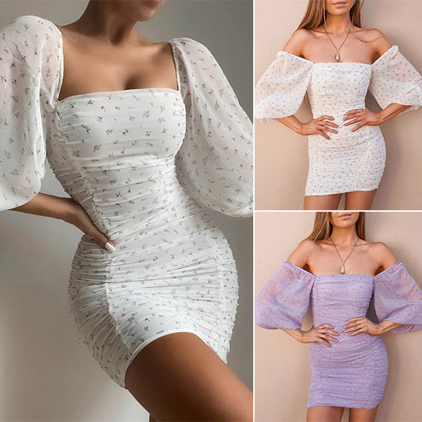 This figure-hugging bodycon dress is perfect for showing off your curves! It features a square neckline, puff sleeves, and ruching details. The allover floral print is sexy and feminine. Wanna have a try?