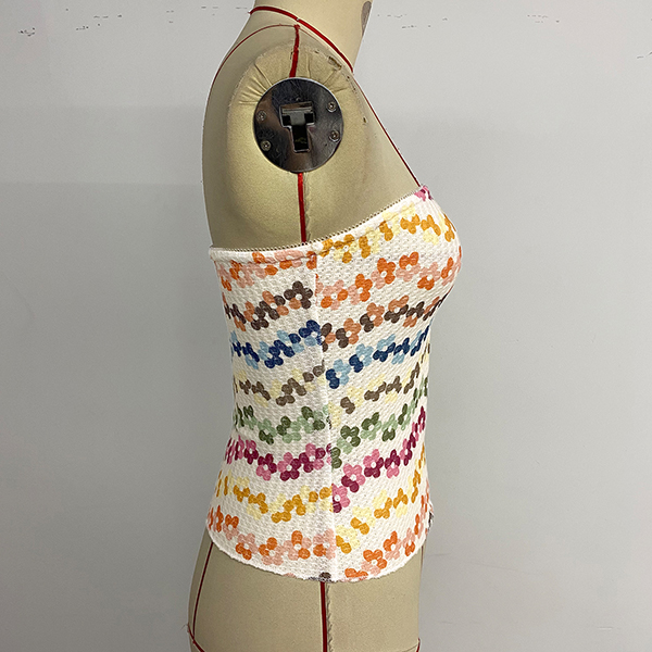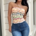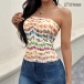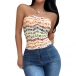 Sexy Floral Printed Strapless Crop Shirt
