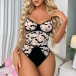 Sexy Floral Printed Three-piece Lingerie Set Consist of Push-up Bra, Girdle and High-waist Briefs