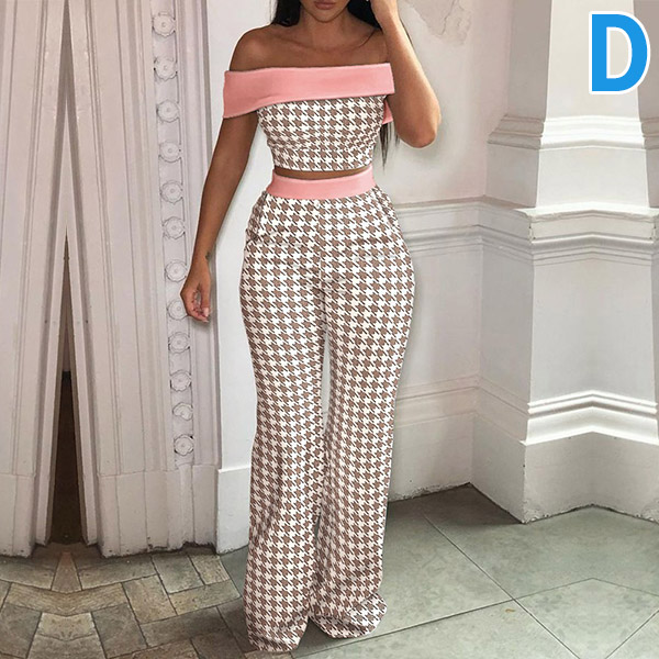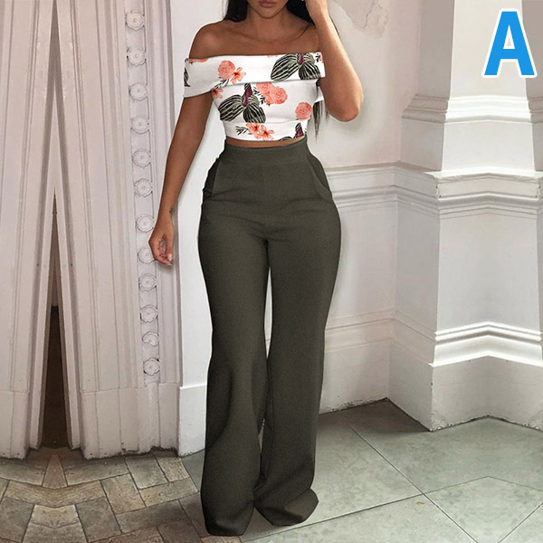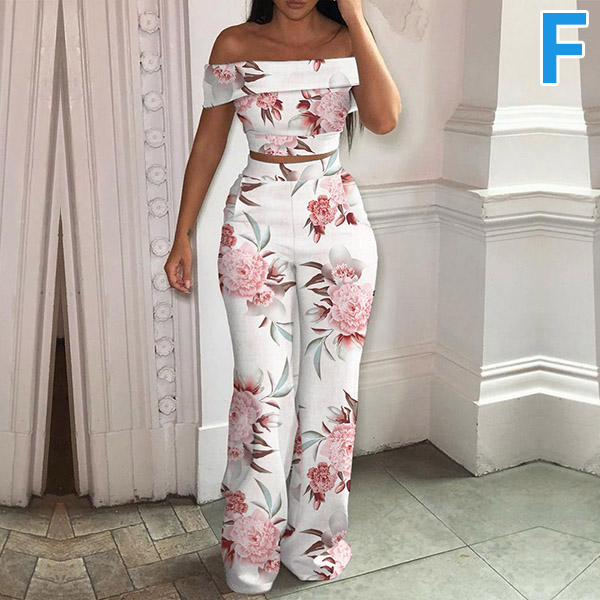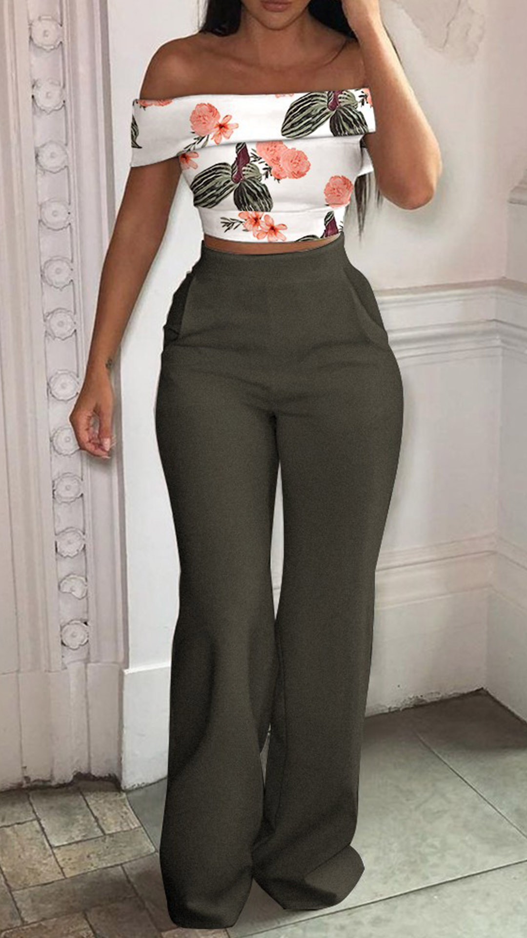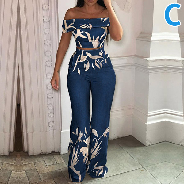 Sexy Floral Printed Two-piece Set consist of Off-the-shoulder top and Wide-leg Pants