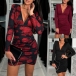 Sexy Floral Printed V-neck Long Sleeve Irregular Hemline Bodycon Dress