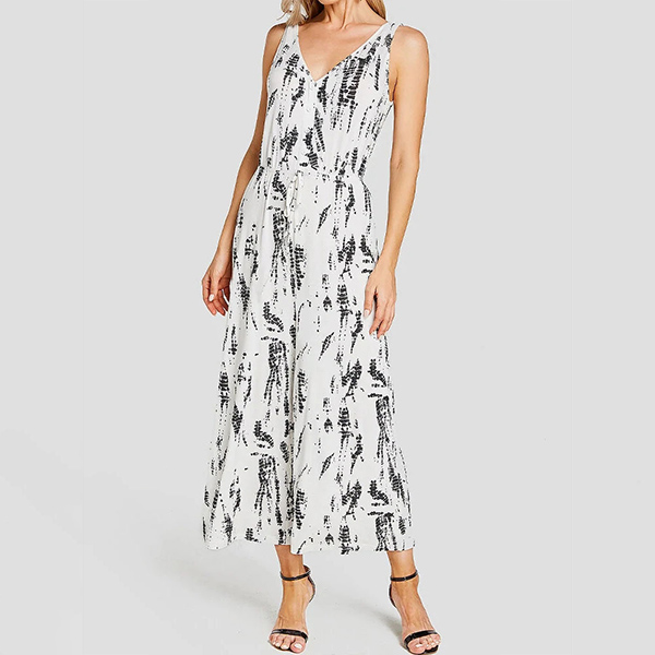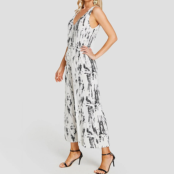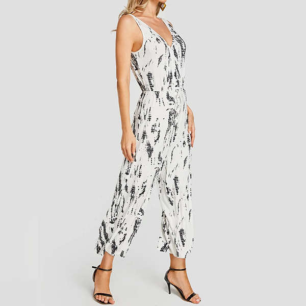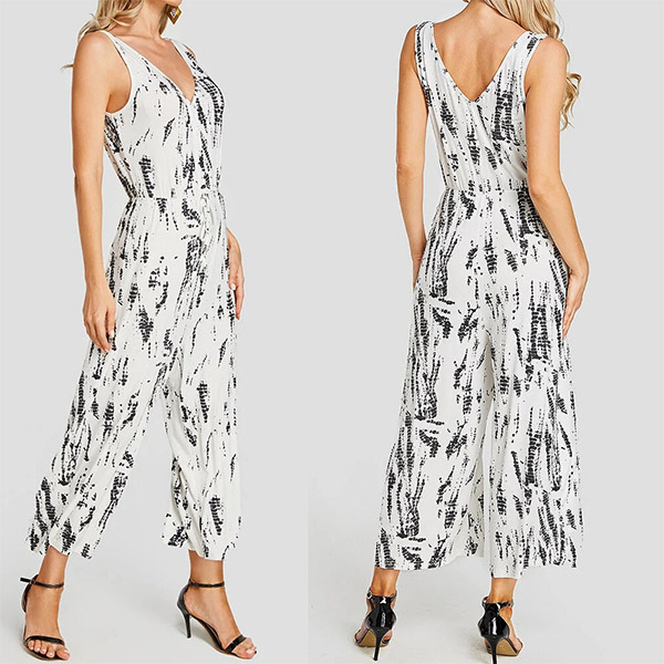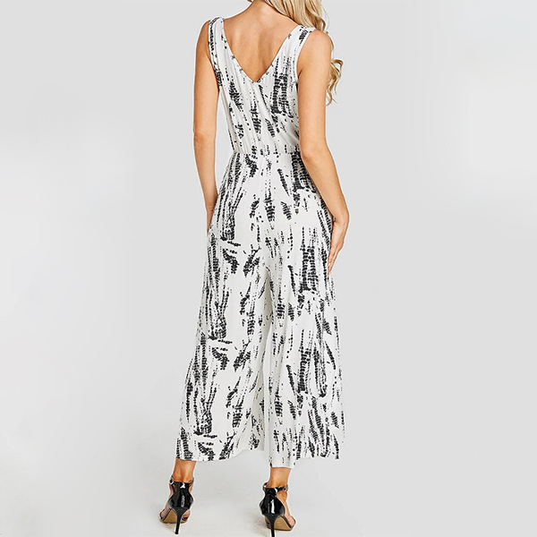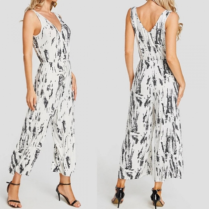 Sexy Floral Printed V-neck Sleeveless Wide-leg Jumpsuit