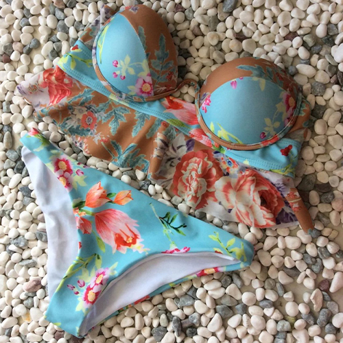 Soak in the water and the sun with this bikini set. Boasting a vibrant floral print,sweet and romantic.