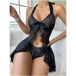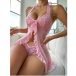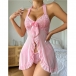 Sexy Front Bowknot Ruffle Hemline Halterneck Two-piece Nightwear Set