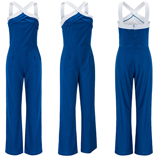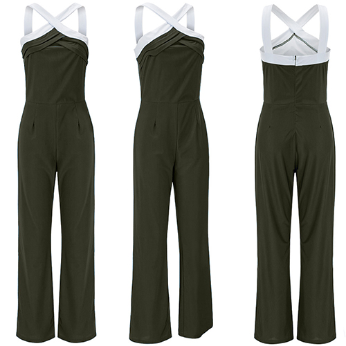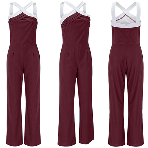 it features front crossover, backless and sleeveless design, complemented with contrast color and slim-fitting style,