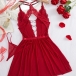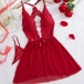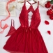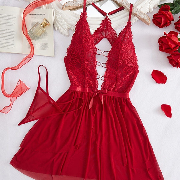 Sexy Front Cut Out Bowknot Lace Spliced Chiffon Nightwear Slip Dress