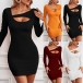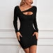Sexy Front Cut Out Irregular Neckline Bodycon Dress