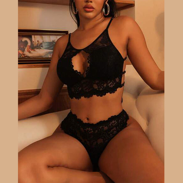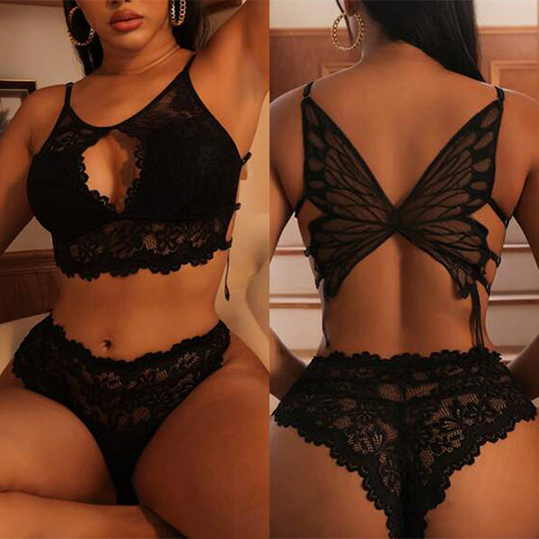 Sexy Front Cutout Butterfly Lace Two-piece Lingerie Set