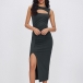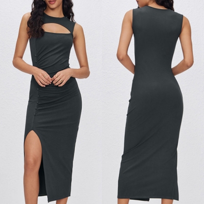 Sexy Front Cutout Side Slit Bodycon Tank Dress