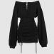 Sexy Front Lace-up Off-the-shoulder Long Sleeve Side Drawstring Bodycon Dress