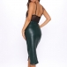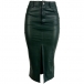 Sexy Front-slit Hem High Waist Solid Color Slim Fit PU Leather Skirt
