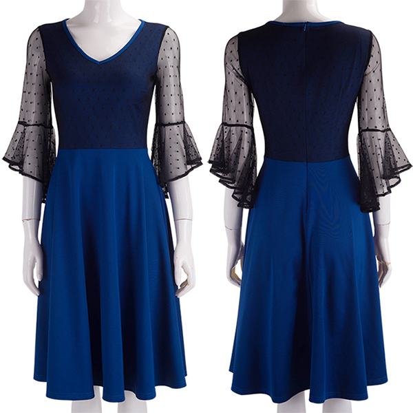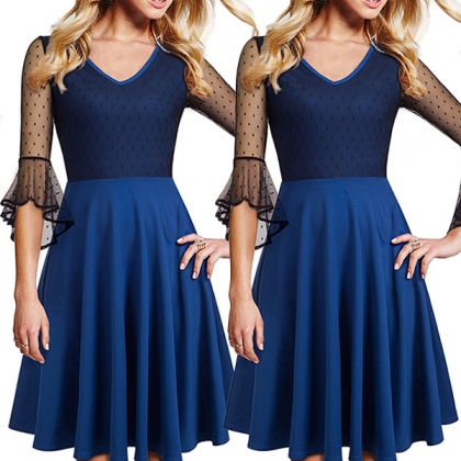 You can stay elegant and charming in this dress from daytime to night. Designed with 3/4 trumpet sleeve,v-neck and a
