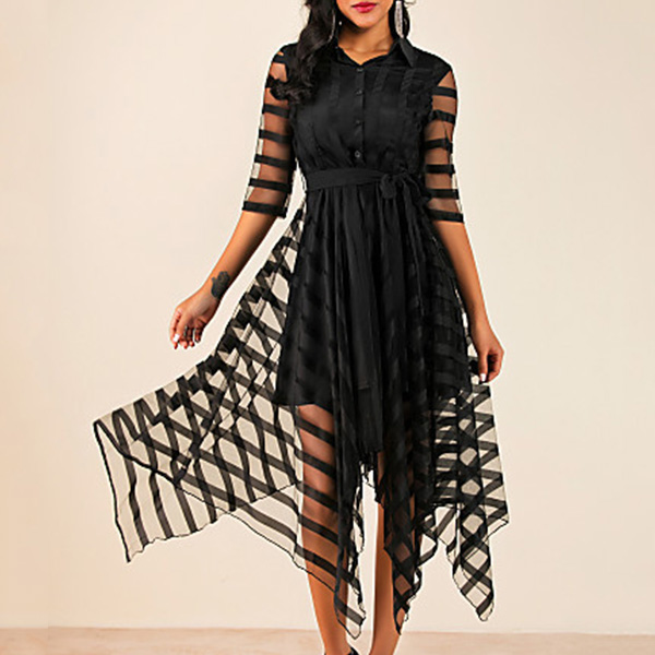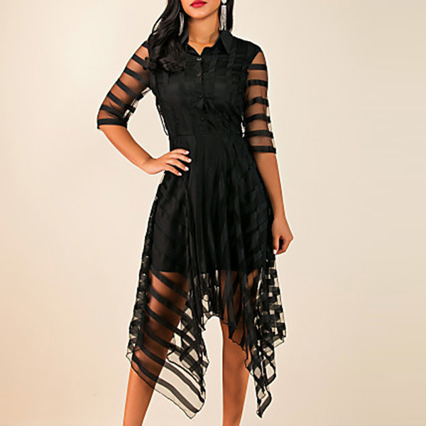 Sexy Gauze Spliced 3/4 Sleeve Irregular Hem Dress