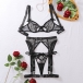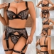 Sexy Gauze Spliced Bowknot Zebra Print Four-piece Lingerie Set