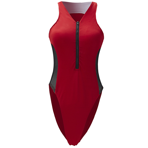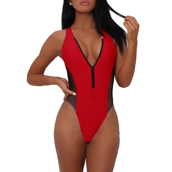 Sexy Gauze Spliced Deep V-neck One-piece Swimsuit