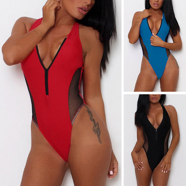 For your swimming time and beach days,this one-piece swimsuit is your perfect partner. The gauze spliced and deep v-neck design make it look so sexy and alluring. Your seductive figure can have a full display in this swimsuit.