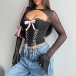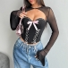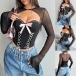 Sexy Gauze Spliced Front Cutout Lace-up Bowknot Long Sleeve Corset Shirt