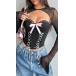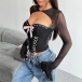 This corset shirt features a gauze splicing, front cutout detailing, lace-up design, bowknot accent, long sleeves, and a corset-inspired silhouette for a sultry and stylish look. The bowknot accent adds a feminine and playful touch, drawing attention to the front of the shirt. Add this sultry and stylish corset shirt to your collection for an unforgettable and eye-catching option.