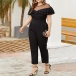 Let your incredible style bloom in this jumpsuit! The flattering black tone,high waist and clean silhouette design can showcase your slender figure,while the ruffle and gauze spliced design will easily enhance your feminine appeal. For your dinner dates and weekend gatherings with your friends,this little stunner can be a good choice.