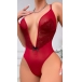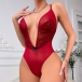 Sexy Gauze Spliced Lace Plunge V-neck Criss-cross Backless Lingerie Bodysuit
