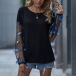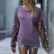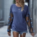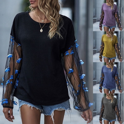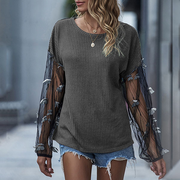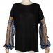 Sexy Gauze Spliced Lantern Sleeve Round Neck T-shirt