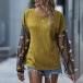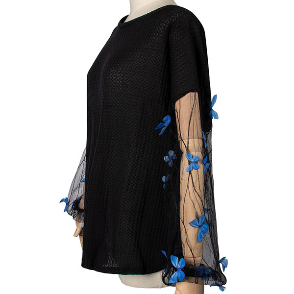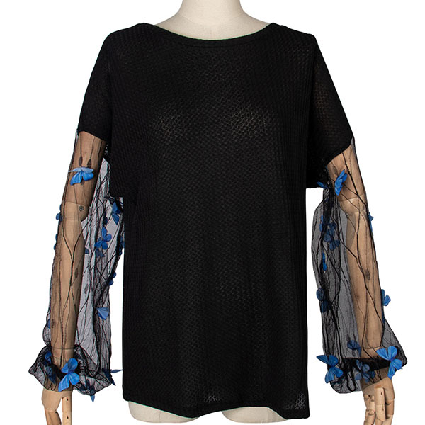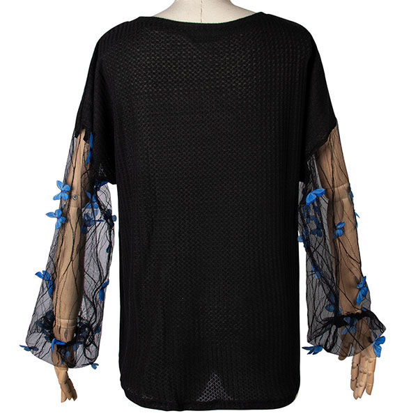 Only need one glance,you would be attracted by this unique top. What makes this piece look so distinctive and attractive? It owes to the gauze spliced lantern sleeve design. What's more,its soft and breathable fabric can ensure you a comfortable day. Just enrich your wardrobe with this piece.
