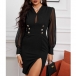 For a sexy yet flirty working look,you can just throw yourself into this delicate dress. The flattering black tone and fit silhouette design can better portray your slender figure. Meanwhile,the v-neck,slit hem and gauze spliced lantern sleeve design make this piece full of style and charm. Dress it up with your favourite heels for a stunning look!