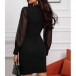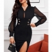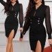 Sexy Gauze Spliced Lantern Sleeve V-neck Slit Hem Slim Fit Suit Dress