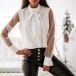 This shirt that combines of sweet,stylish and flirty vibes is worth to arouse your attention. The see-through gauze spliced long sleeve and lace-up bow-knot collar design are the highlights,which make this piece look so stunning and distinctive. Try to match with a high waist bottoms to achieve for a charming look.