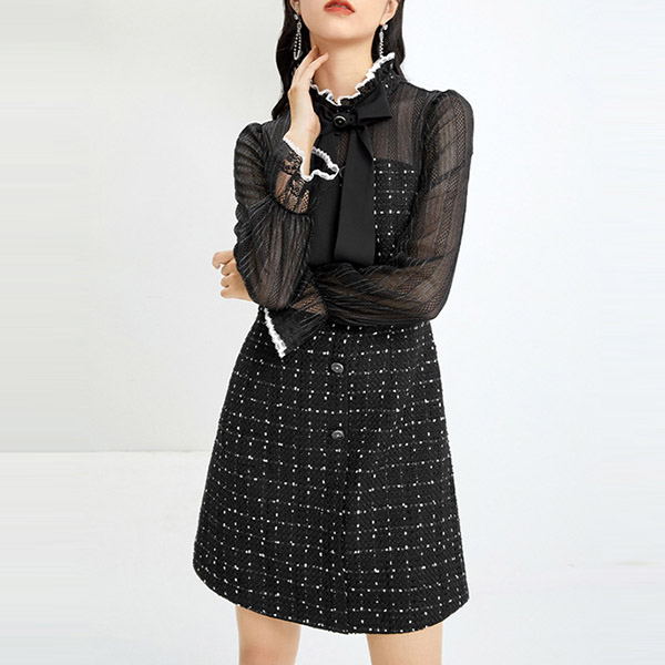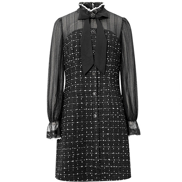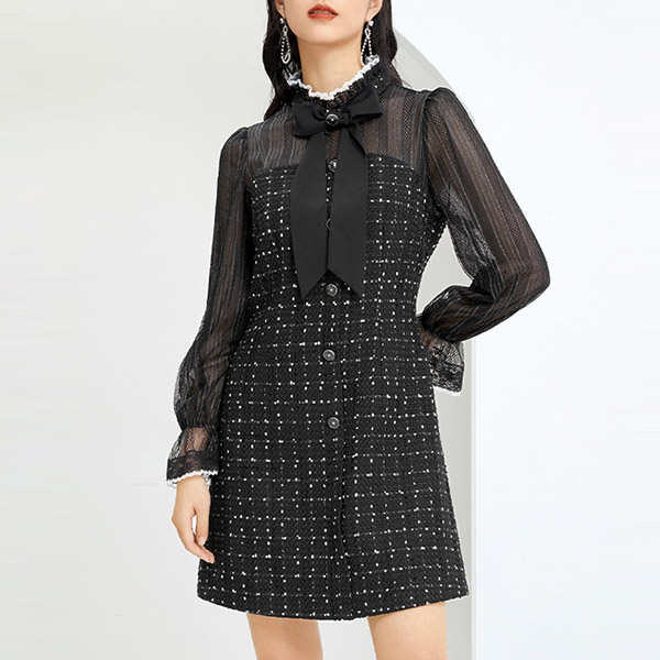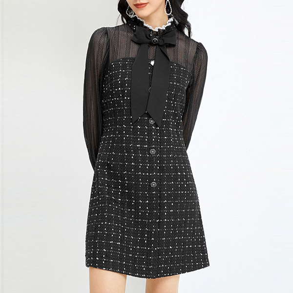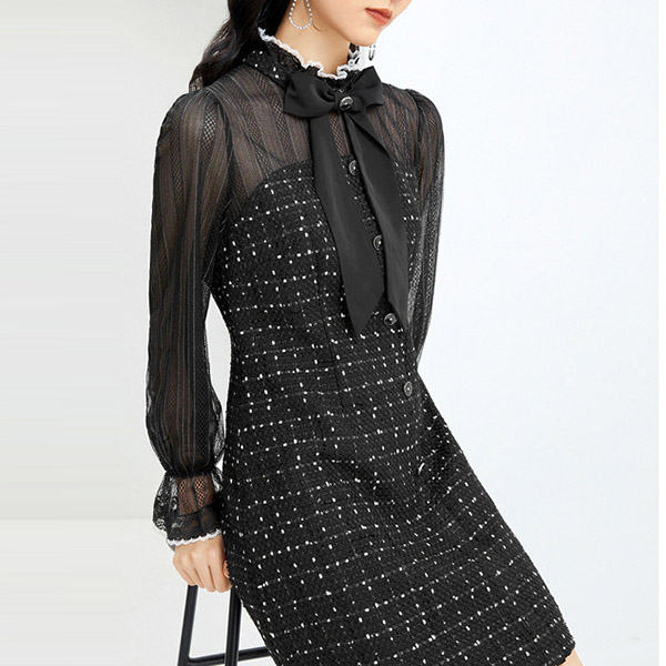 When have a dating with your friends,you can slip into this dress to win their envious eyes. Mock two-piece style design makes it look so chic,while the gauze spliced details,ruffle stand collar and bow-knot design make this piece full of sassy and flirty vibes. What you need to do is just matching with your favourite heels,then you can look stunning and beautiful enough!