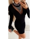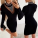 Sexy Gauze Spliced Long Sleeve Mock Neck Beaded Tight Dress