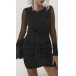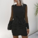 Sexy Gauze Spliced Long Sleeve Round Neck Irregular Hem Tie-belt Dress